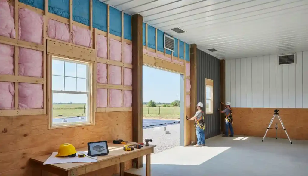 For a significant upgrade in energy efficiency, use “bookshelf girt” framing. Instead of placing girts on the outside of the posts, they are installed between the posts, flush with the interior edge and supported by girt blocks. This technique creates a deep, uninterrupted wall cavity from post to post. This design is vastly superior to standard framing because it allows for a continuous layer of insulation, eliminating “thermal bridging” through the solid wood posts. Thermal bridging can reduce the effective R-value of a wall by as much as 15-20%. By adopting this commercial-grade technique, you create a far more energy-efficient thermal envelope from the outset.