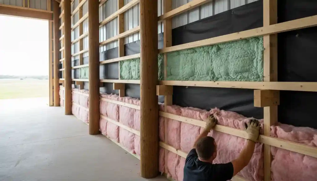 From years of seeing what works, the optimal insulation strategy is a hybrid “flash and batt” system. First, apply a 1-2 inch layer of closed-cell spray foam directly against the interior of the steel siding. This “flash” coat accomplishes two critical tasks: it creates a perfect air seal, stopping all drafts, and because it is impermeable to moisture, it prevents condensation from ever forming on the cold steel. The remainder of the wall cavity is then filled with cost-effective fiberglass or mineral wool batts to achieve your target R-value. This hybrid approach gives you the superior air-sealing and moisture-control performance of spray foam at a fraction of the cost of a full-cavity foam job, representing the best value in high-performance insulation.