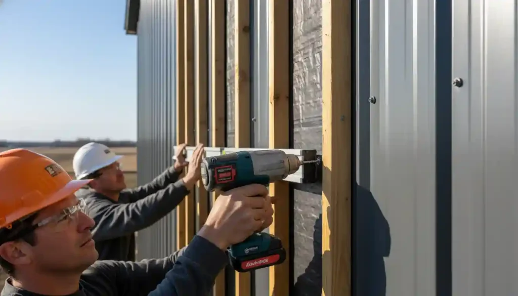 To create a truly resilient wall system, install the siding on a “rainscreen.” This advanced technique involves installing vertical furring strips (1×4 treated lumber or composite strips) over your weather-resistant barrier (“house wrap”) before the metal siding is attached. This creates a 3/4-inch air gap between the siding and the rest of the wall assembly. This gap provides a drainage plane for any water that might get past the siding and, critically, it promotes airflow that helps the entire wall assembly to dry out. This pressure-equalized system is the single best way to prevent moisture from being trapped in your walls, virtually eliminating the risk of mold and rot for the life of the building.